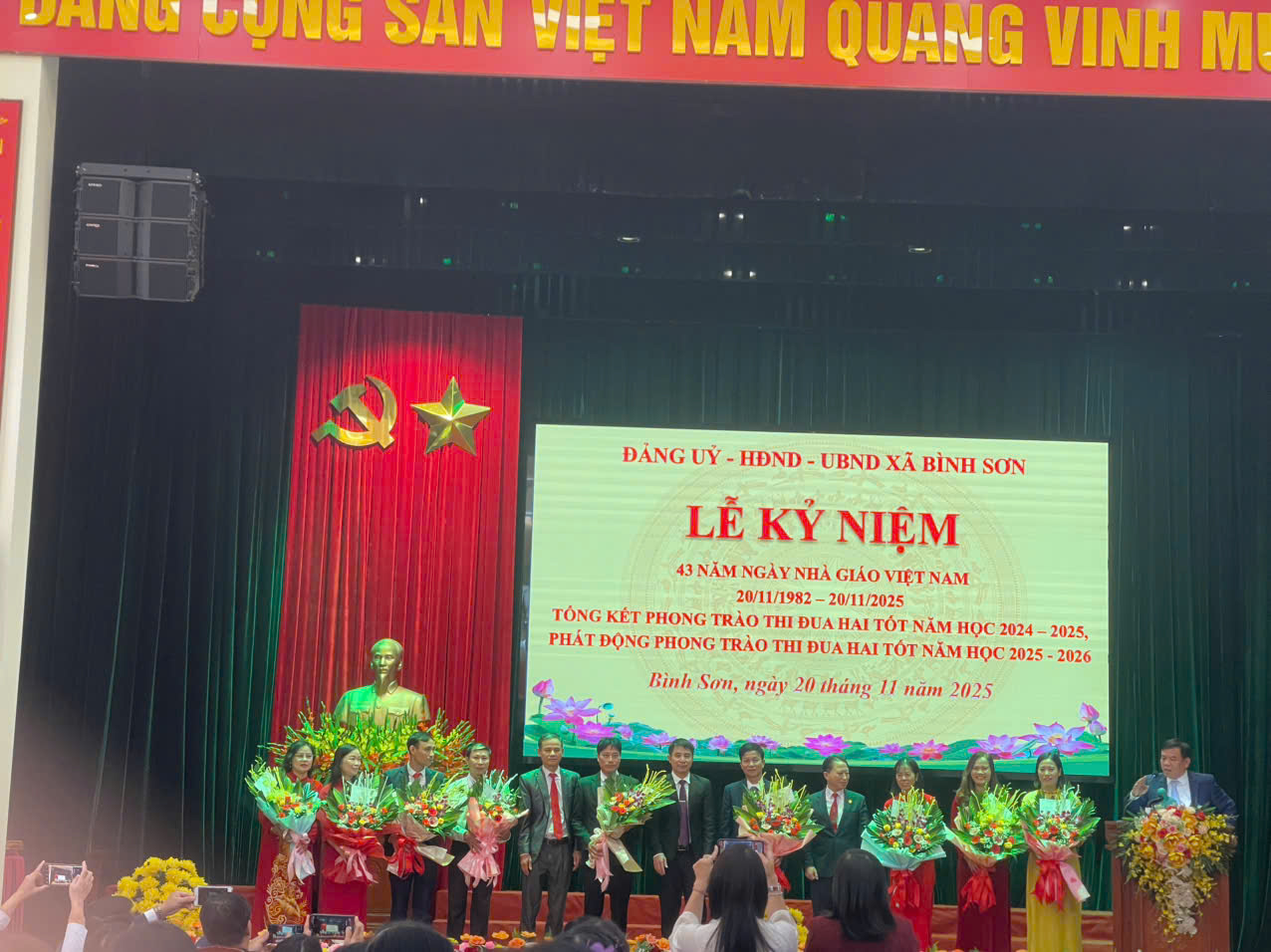 Sáng ngày 20/11/2025, trong không khí trang trọng và ấm áp, Xã Bình Sơn đã tổ chức thành công Lễ kỷ niệm 43 năm Ngày Nhà giáo Việt Nam (20/11).